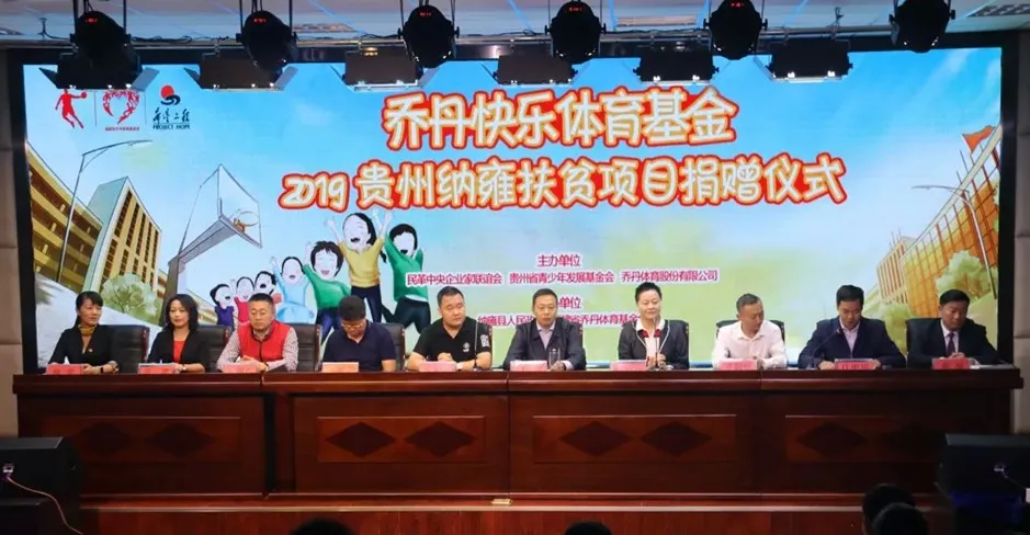 尊龙快乐体育基金捐赠100套尊龙乔丹快乐体育园地、4套尊龙乔丹希望数字图书馆,援建1所希望小学。